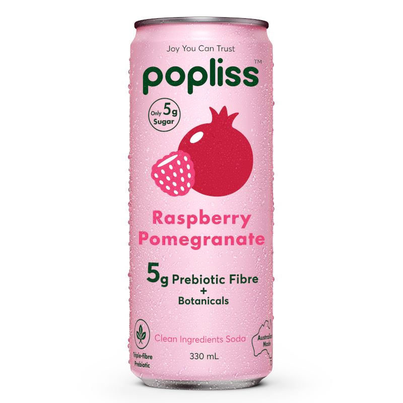 popliss Prebiotic Raspberry & Pomegranate. Bright, juicy raspberry meets the deep, rounded richness of pomegranate in a vibrant, refreshing soda. Fruit-forward and finished clean — bold yet easy to drink, and one you’ll keep coming back to. Non-GMO. Vegan. No Erythritol. No Artificial Sweeteners. No Food Acids.