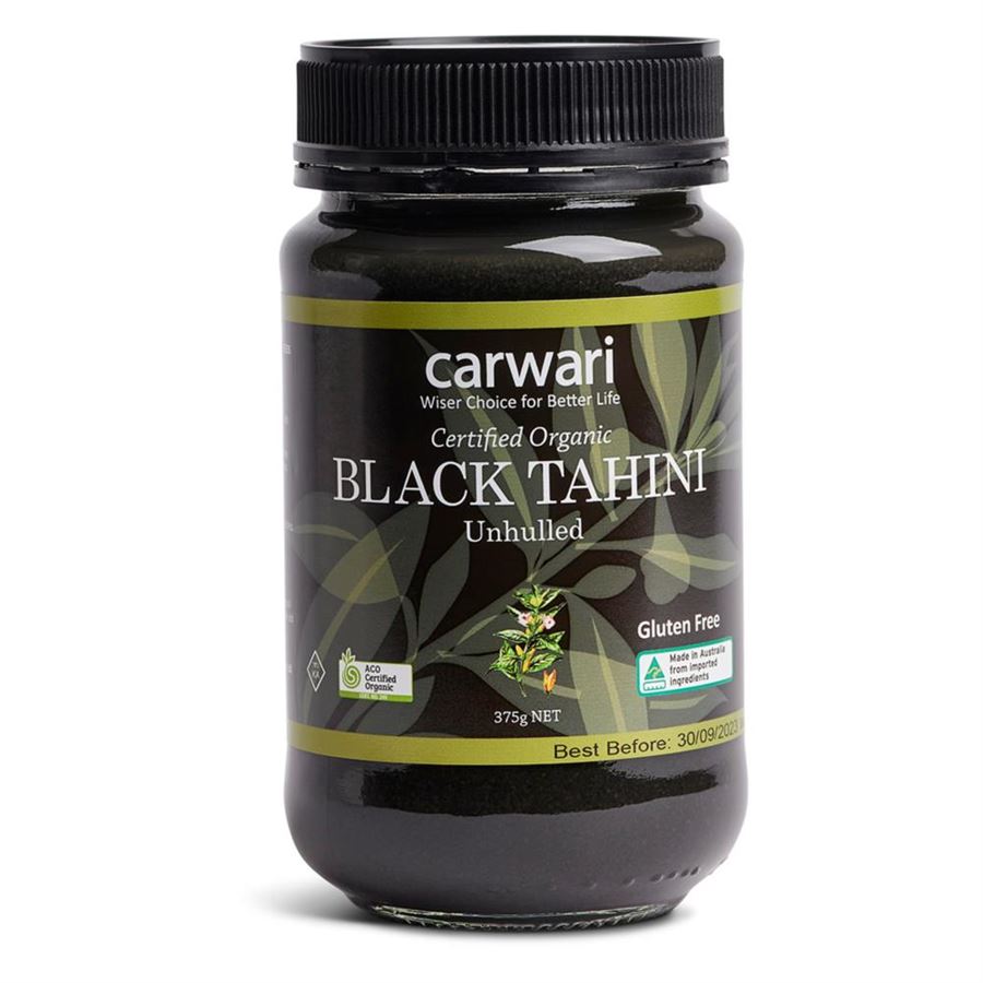 Carwari Unhulled Black Tahini has a charcoal grey to black colour from black sesame seeds. It has a mild aroma & is similar in taste to hulled tahini. Very similar in taste to hulled white tahini. Ideal for dips, baking, ice cream, desserts, dressings & sauces. Kosher Certified.