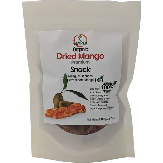Ceypla Organic Dried Mango is a delicious and healthy snack produced in Sri Lanka from produce grown by small and family-owned farms.